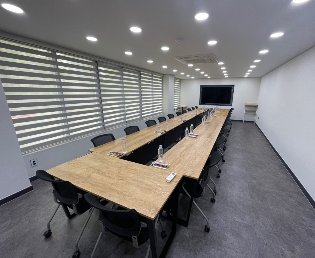 무료제공 : 75인치 TV, 화이트보드, 휴대폰 멀티충전기, 필기구 및 메모지, 생수, 강의대, 유무선마이크, 노트북 1대 무료 대여